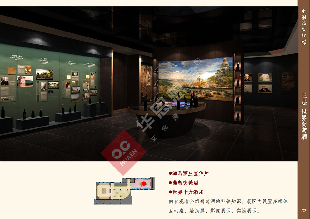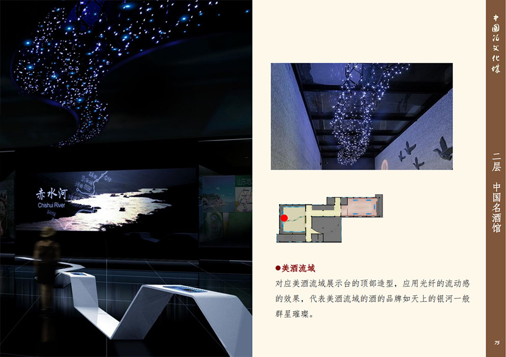 設(shè)計理念:展館整體改造目的運用新型展示手法,先進的多媒體技術(shù),對展館進行提升。將被動接受大量信息、傳統(tǒng)枯燥參觀方式轉(zhuǎn)變?yōu)槌錆M趣味地主動獲取信息,使展陳變得生動、直觀同時,更融入了手機軟件技術(shù),定制專屬于中國酒文化城的APP程序。參與者能夠通過手機或平板電腦進行參觀,對喜愛的展項進行評價、下載展示內(nèi)容我們希望打造的是一一覆蓋全年齡層,內(nèi)容豐富、權(quán)威性;參觀方式生動震撼,沉浸式的體驗方式;一個富時代感的,能帶回家的博物館。