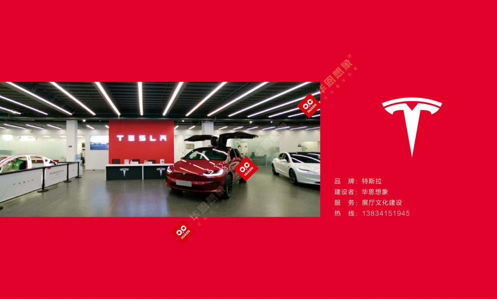 服務項目:汽車展廳文化建設全案包含:一、特斯拉目視化形象墻;二、特斯拉目視化展廳;三、特斯拉目視化場景搭建;四、特斯拉目視化直播間搭建;五、特斯拉形象標識;六、特斯拉充電樁展廳文化墻